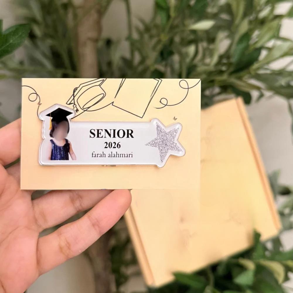 • بروش السينيور بتصميمه الأنيق يحمل اسمك وصورتك ليكون القطعة اللي تميّزك عن الكل